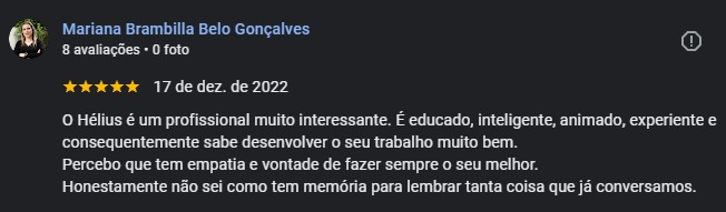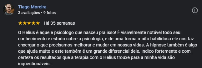 Eu me chamo Hélius Sironi de Moraes, sou psicólogo e atuo com psicoterapia, hipnose clínica, consultoria em gestão de pessoas e docência.