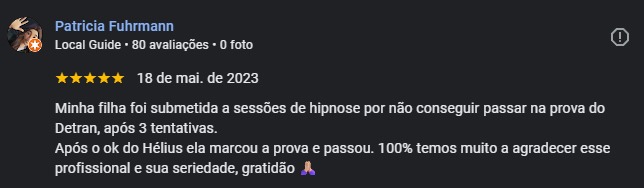 Possuo formações em hipnose clínica, rápida, regressiva, de emagrecimento e não verbal. Certificação de Practitioner in Hipnosys, pelo Atlantic Hipnosys Institute.