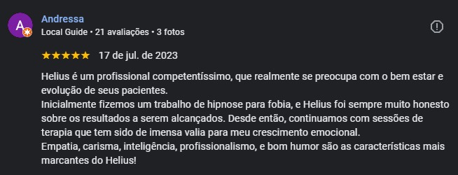 Trabalho há mais de uma década com psicoterapia e hipnose clínica. Há vinte anos estudo o comportamento humano. São + de 7000 horas de atendimento e + de 600 pessoas alcançadas pelo meu trabalho.